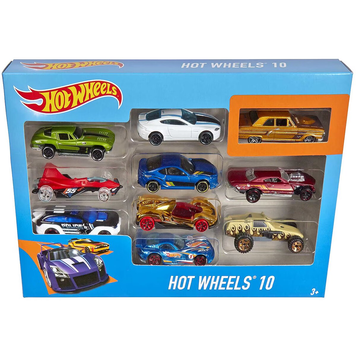 LongSummaryDescription - Hot Wheels Set of 10 1:64 Scale Toy Trucks and Cars for Kids & Collectors. Product type: Vehicle set, Recommended age (min): 3 yr(s), Recommended age (max): 99 yr(s), Material: Metal, Product colour: Assorted colours