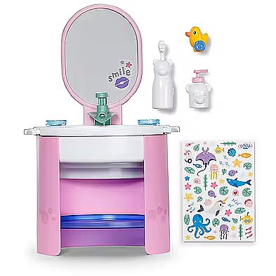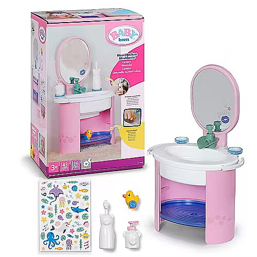 LongDesc - With the BABY born washbasin, washing your hands and brushing your teeth becomes fun to play. Equipped with everything that little doll parents need for hygiene, the sink brings realistic play fun into the children's room. Thanks to a purely mechanical water pump, real water can flow out of the tap. The small toothbrush, which is based on an electric toothbrush with its vibration, also does not require any batteries. Of course, a soap dispenser should not be missing. The sticker sheet can be used to decorate the washbasin and accessories individually. This makes washing your hands really fun.