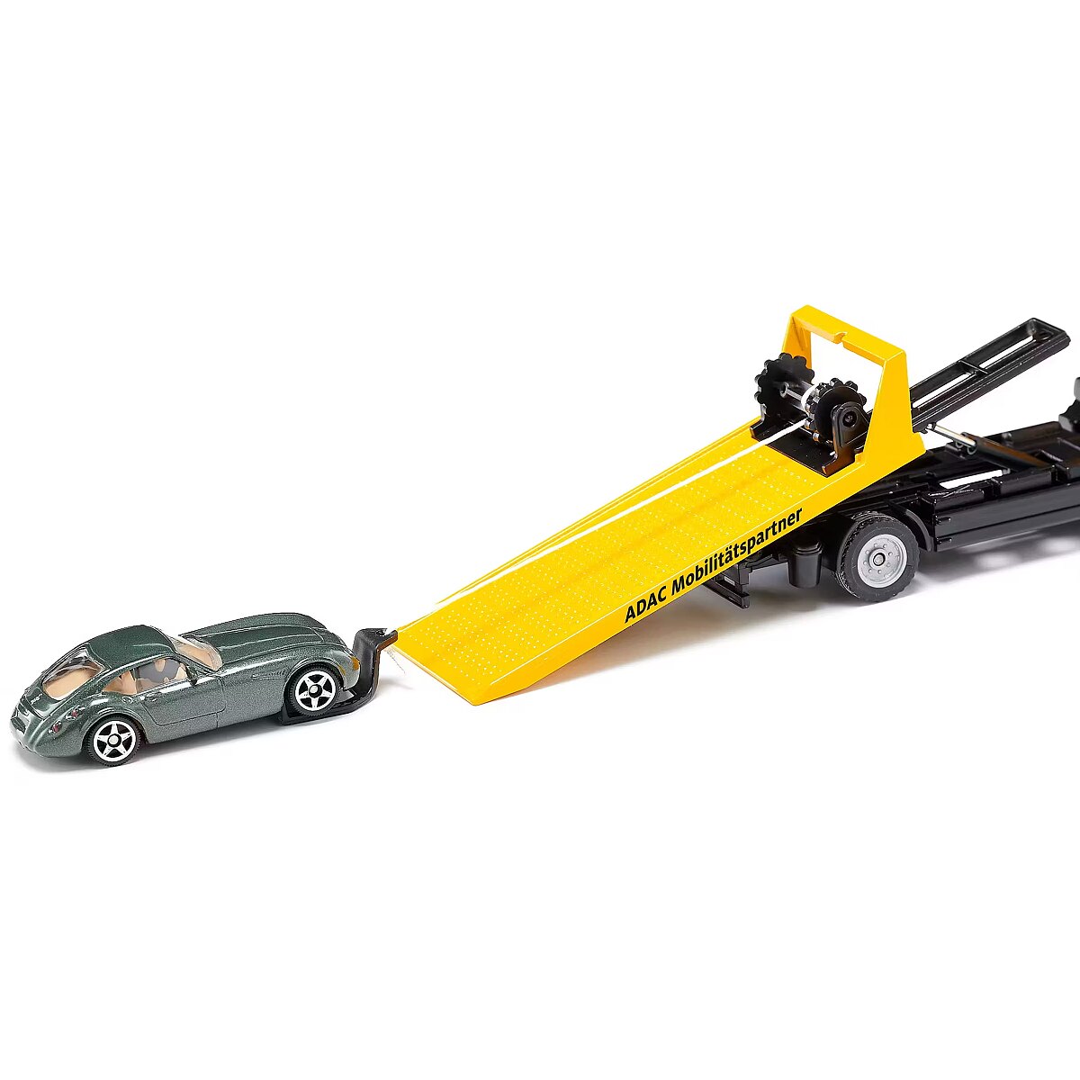 LongDesc - We are continuing the success story and giving the perennial favourite 2712 a new MAN driver's cab. Of course, the tow truck continues to roll into the children's room with its familiar strengths and also comes with the latest lettering. So the fun can continue uninterrupted.‘Has someone called a tow truck?’The Yellow Angels from the ADAC are immediately on the scene if a car breaks down somewhere. The platform can be moved and tilted so that the broken-down vehicle can be pulled up easily using the winch. The heavy-duty truck is painted in the iconic ADAC yellow colour with black lettering. The driver's cab (MAN) is identical to the original down to the smallest detail. Robust metal makes the tow truck durable and strong enough to transport even smaller vans and construction machinery. Definitely a must-have in the hustle and bustle of a toy town, as there are always broken-down vehicles and vehicles involved in accidents that need to be transported urgently.