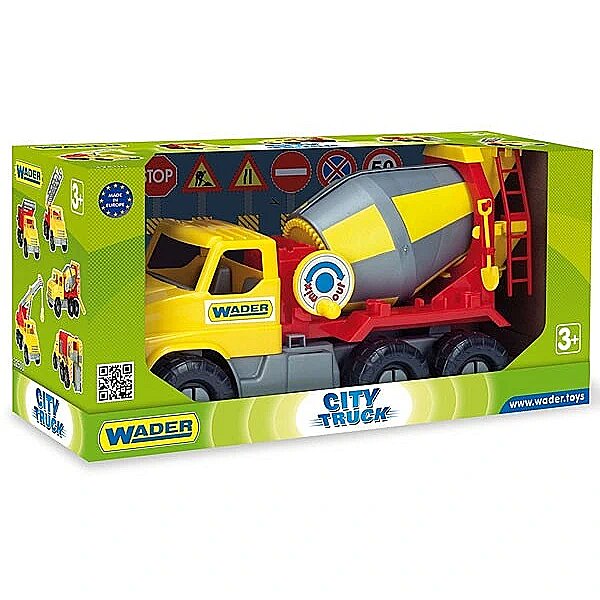 Description - The concrete mixer from the City Truck series is the perfect toy for all small fans of motor vehicles. It is characterised by realistic reproduction, solid workmanship, lightweight robust construction and easy control. The hitch on the front of the vehicle makes it possible to attach a string, a rope for pulling. The toy is equipped with a movable pear, shovel, ladder and drain trough. The child can fill the pear with water and sand and, thanks to the mounted crank, turn it and mix its contents. The vehicle is the perfect addition to construction-related play. All the components are made of high-quality, durable and weatherproof plastic, making the toy ideal for use at the beach, at home or in the sandbox. It can also be stored all year round, e.g. on the balcony or in the garden. Playing with mechanical vehicles such as the Concrete Truck from the City Truck series stimulates children's creativity and imagination, develops their manual and motor skills, precision of movements and eye-hand coordination. Exploring the construction and operation of the vehicle satisfies the natural curiosity of our kids, develops their cognitive senses and teaches them logical and cause-and-effect thinking.