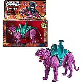LongDesc - Masters of the Universe is back for admirers, collectors and a whole new generation of fans. It's time to get back into the battle to help He-Man save the universe from the evil Skeletor! Enter the ever-fierce Panthor. Panthor is a giant panther-like beast who's ferociously loyal to Skeletor. Its powerful purple body has 12 moveable joints — including legs, head, neck, and jaw — for power posing and imaginative battle scenes. Battle ready in deep green removable saddle and armor, this impressive cat arrives in beautifully rendered, vintage design packaging. This is a thrilling figure in the Origins line that honors classic Masters of the Universe traditions while incorporating exciting new design features for intense action play. By the power of Grayskull! Colors and decorations may vary.