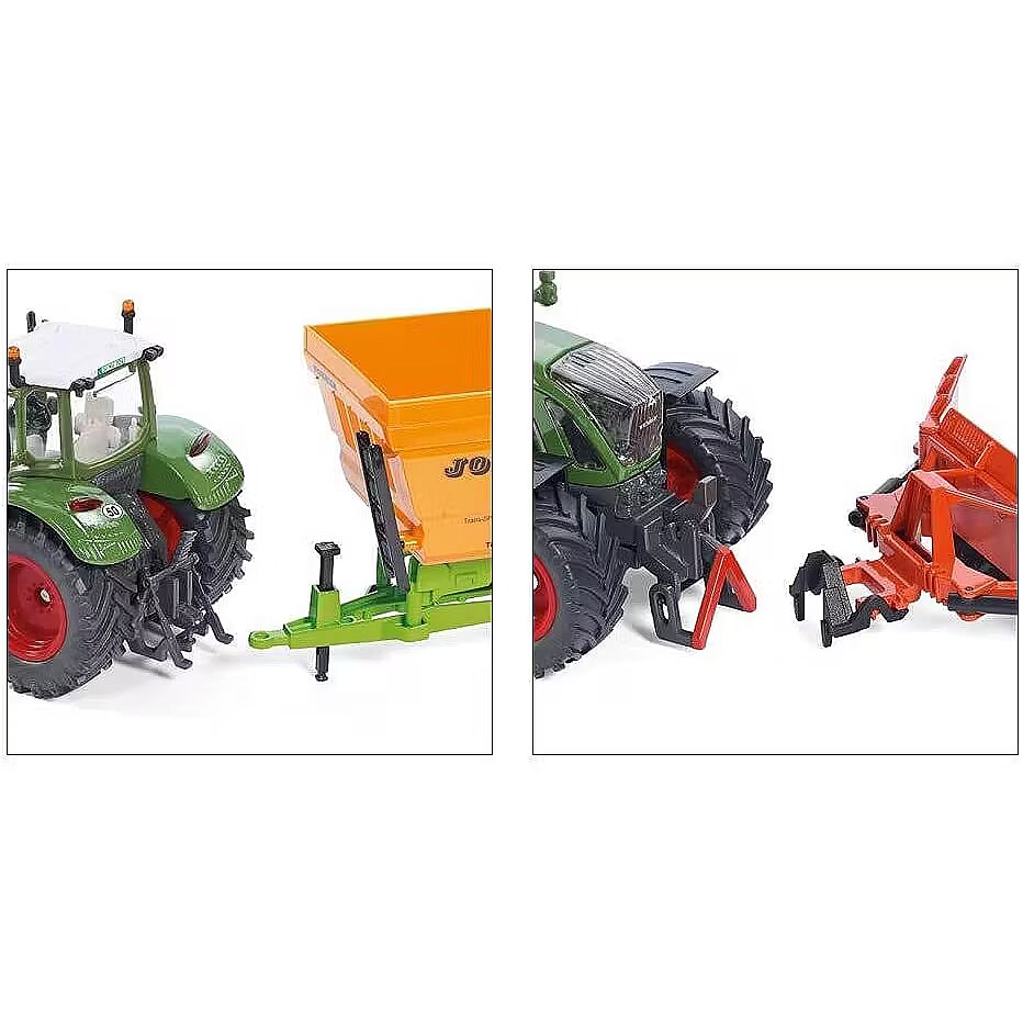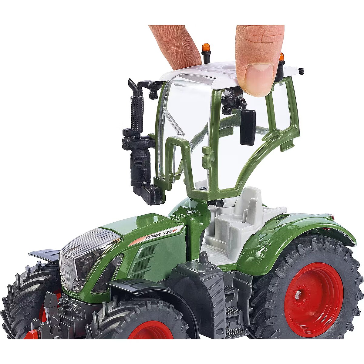 LongDesc - The Fendt 724 Vario continues the Fendt range of top performance and robust mid-class tractors. SIKU now produces this well crafted original as an authentic 1:32 scale toy model. In addition to proven features such as steering mechanism, opening engine bonnet and SIKU coupling devices, this model is fitted with 2 universal lighting systems on the cab roof. The cab is glazed and removable. The front windscreen – just like the original – has optimum vision and curves up to the end of the roof. Original wheel rims and agricultural track tyres complete this high-end model's look.