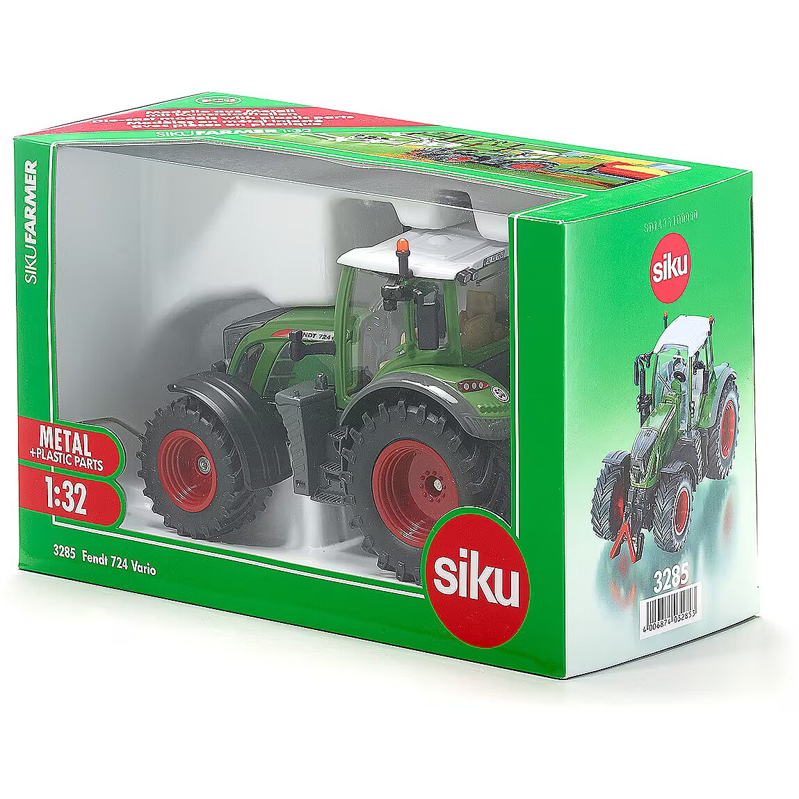 LongSummaryDescription - Siku Fendt 724 Vario. Product type: Tractor, Scale: 1:32, Suggested gender: Boy/Girl. EU TSD warning: To be used under direct adult supervision. Length: 226 mm, Width: 141 mm, Depth: 226 mm. Package width: 102 mm, Package depth: 226 mm, Package height: 141 mm. Country of origin: China, Quantity per pack: 1 pc(s)