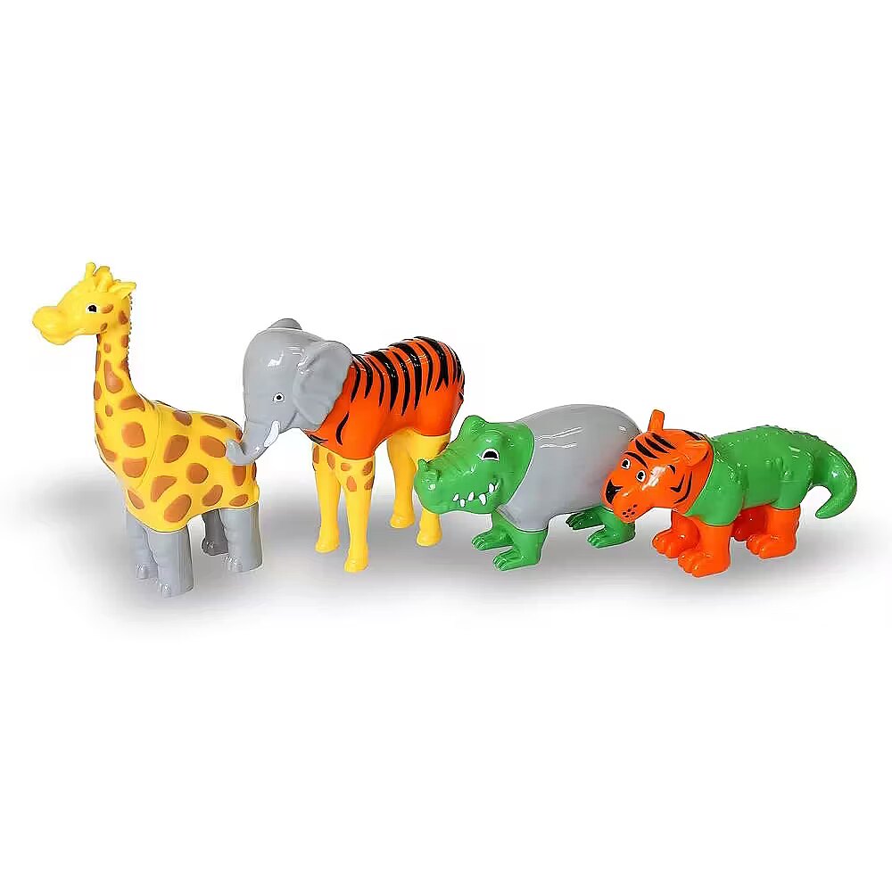 This jungle animal set includes a Tiger, Giraffe, Elephant, and Crocodile.