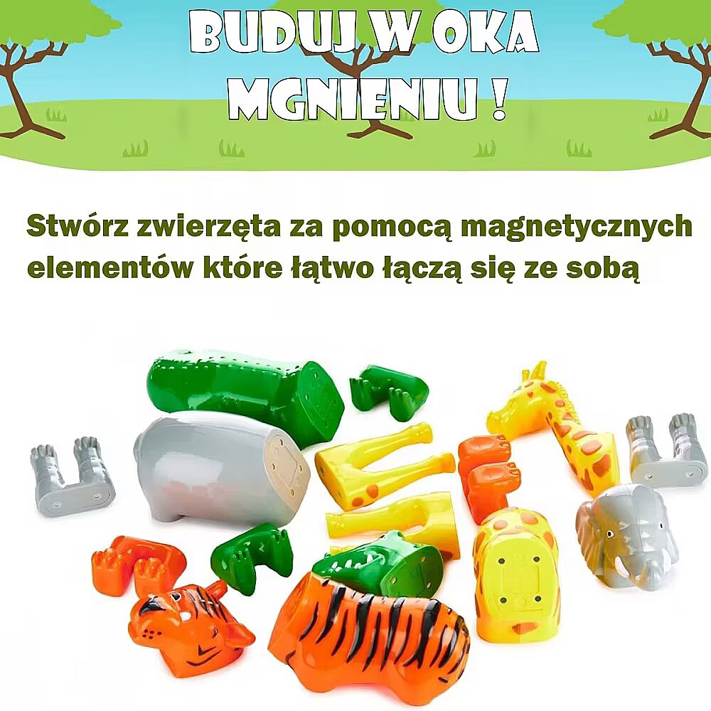 Accessories included - 4 assembled, complete Jungle Animals 16 magnetic elements/modules