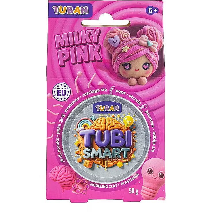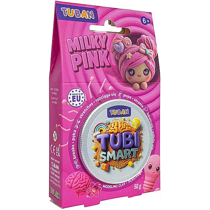 Description - Tubi Smart Playdough - Milky pink 50g Discover a modeling clay in a unique pink color, to which you can add white beads for even more fun. This extraordinary clay stretches, breaks, and bounces, bringing loads of joy with every touch! You can knead it, shape it, and experiment with endless new ways to playonly your imagination sets the limit. When playtime is over, simply store the clay in a sealed jar to enjoy its amazing properties for a long time. MADE IN POLAND.