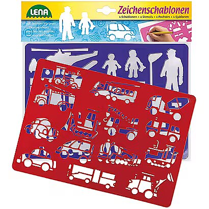 Description - Drawing templates with motif of means of transport and people. Pack contains 2 templates measuring 27 x 23 cm.