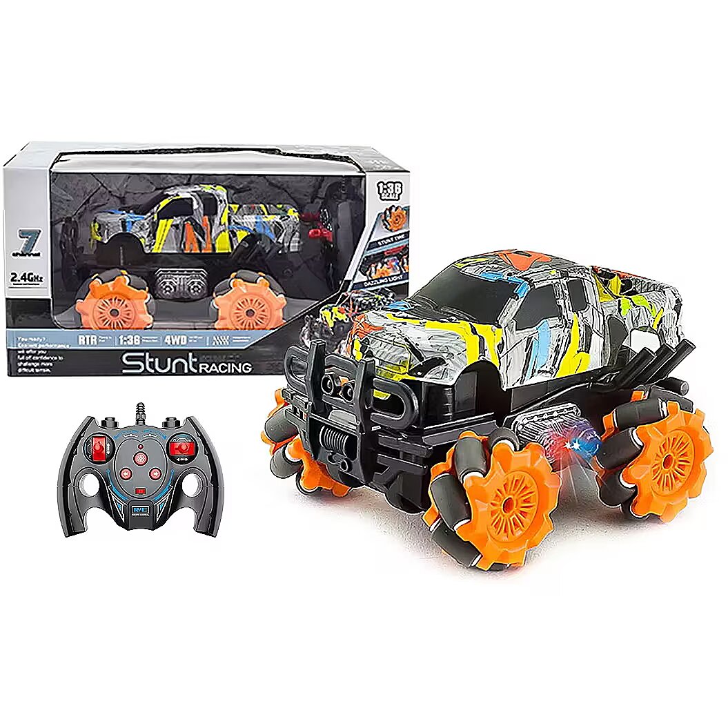 Description - R/C Car Sideways 360-degree rotation Lighting effects Batteries: 3.7V (car) included, 2 x AA 1.5V (remote control) not included