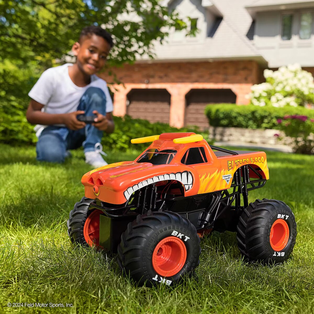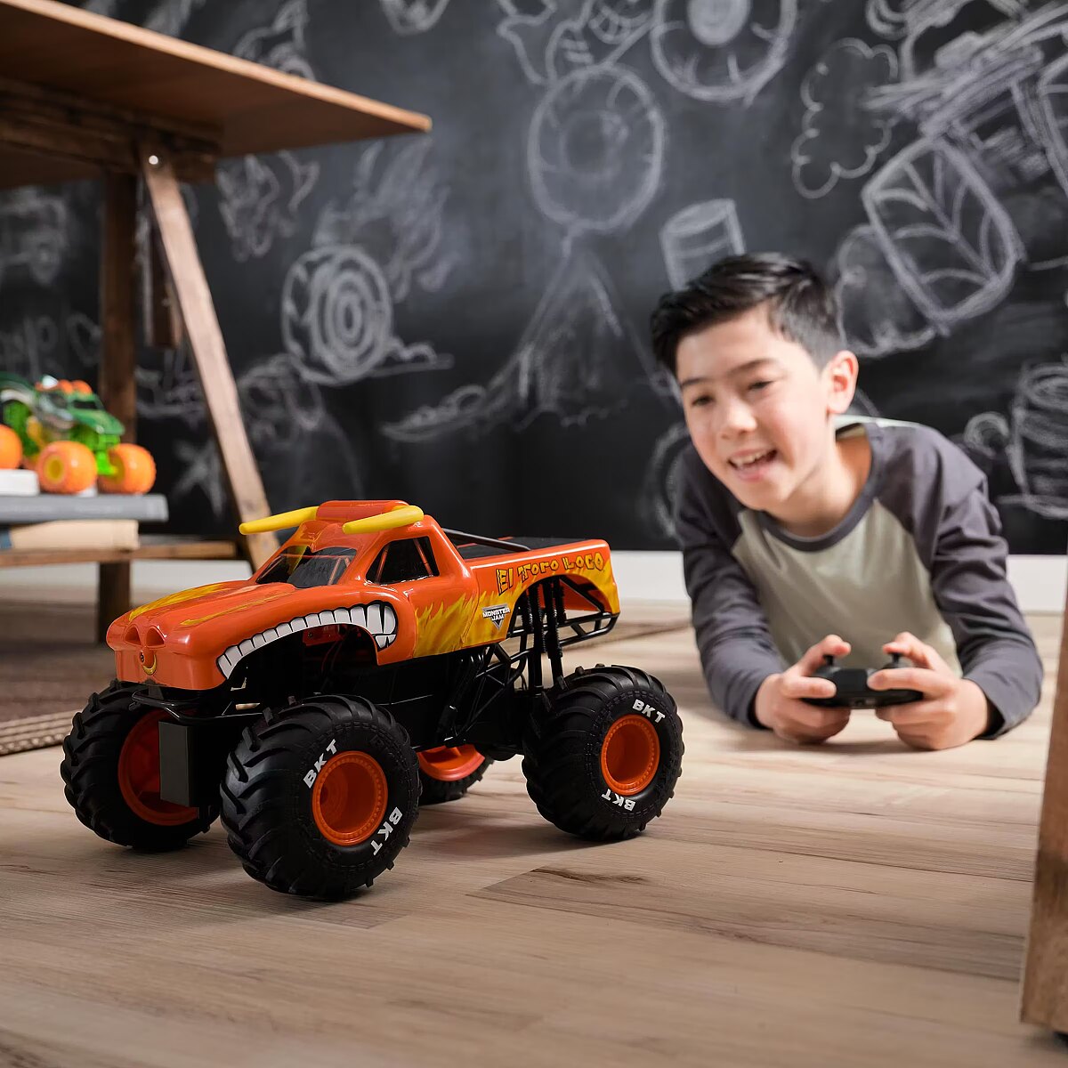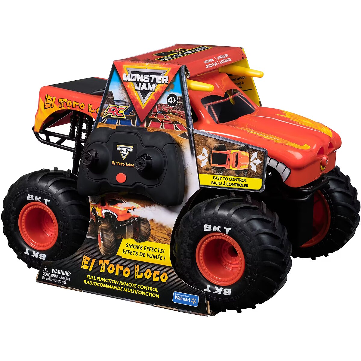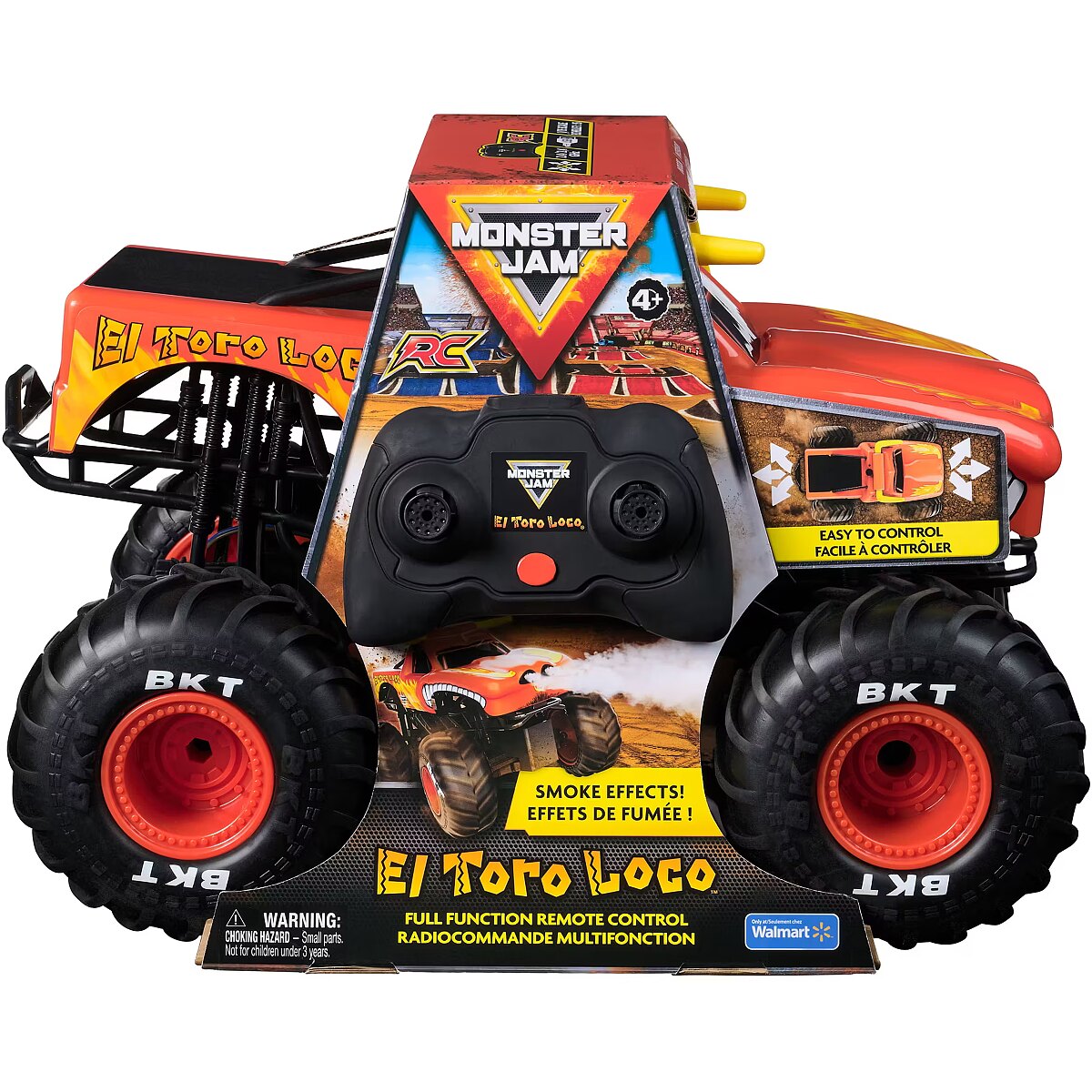 LongDesc - Rev up your engines and get ready for some high-octane fun with the Monster Jam Official 1:15 Scale El Toro Loco RC Truck! Built for true Monster Jam enthusiasts, this remote control truck brings the excitement of the live show right into your home. Featuring a full-function RC with a dual joystick controller and 2.4GHz frequency, you can race up to 6 Monster Jam monster trucks at once, controlling your El Toro Loco from up to 250 feet away! One of the standout features of this exclusive edition El Toro Loco is the smoke effects atomizer. Watch as it blows smoke out of the horns, replicating the thrilling effects seen in live Monster Jam events! This atomizer adds a layer of realism that will captivate both kids and adults alike. The 1:24 scale El Toro Loco RC is an authentic replica, complete with official BKT tires, detailed graphics, and a styled chassis. Every detail has been carefully designed to make you feel like you’re behind the wheel of the real monster truck. Perfect for performing epic stunts, crazy crashes, and brutal bashes, this RC truck can handle it all! Whether you're looking for a birthday present, holiday gift, or just a fun new toy, the Monster Jam Official 1:15 Scale El Toro Loco RC Truck is an ideal choice for kids aged 4 and up. Encourage their imagination and let them experience the thrill of Monster Jam right at home. Add this RC truck to their collection and watch as they embark on endless adventures filled with action-packed fun! Monster Jam toys, playsets, toy cars, and RC trucks are always at the top of kids' wish lists. Don't miss out on this opportunity to bring the excitement of Monster Jam to life with the El Toro Loco RC Truck. It's the perfect gift for boys and girls who love Monster Jam!Includes: 1 Monster Jam 1:24 Scale RC, 1 Remote Control, 1 Instruction Guide