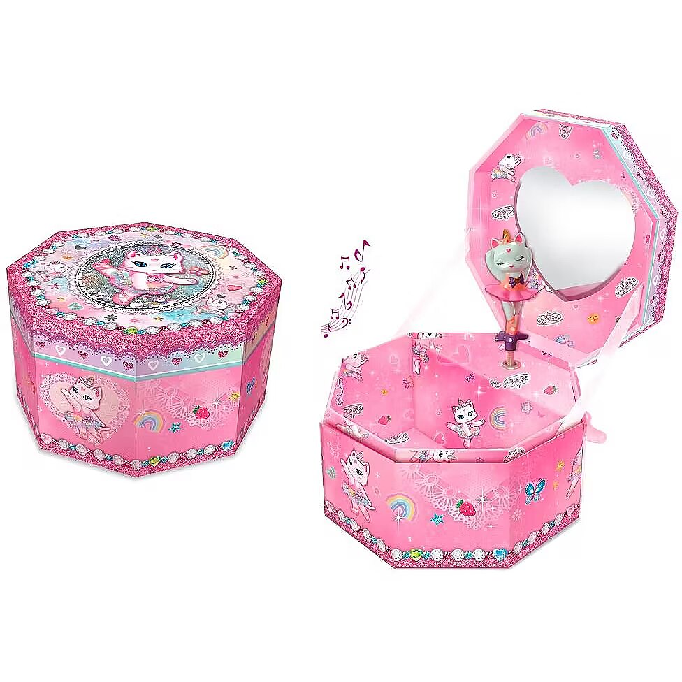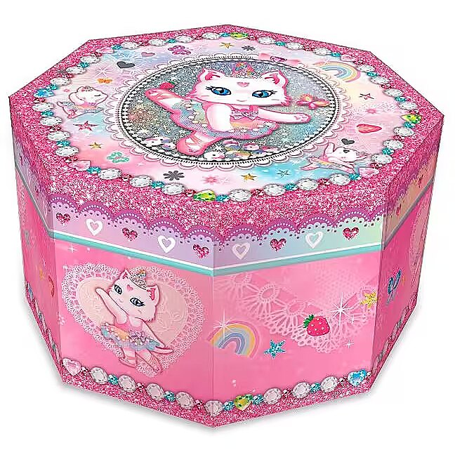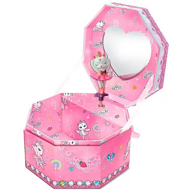 Description - The music box plays a classic melody. When opened, the figurine will spin. When the melody stops playing simply wind the music box up. It works thanks to a special mechanism, no batteries required. Includes a mirror and storage space for small items.