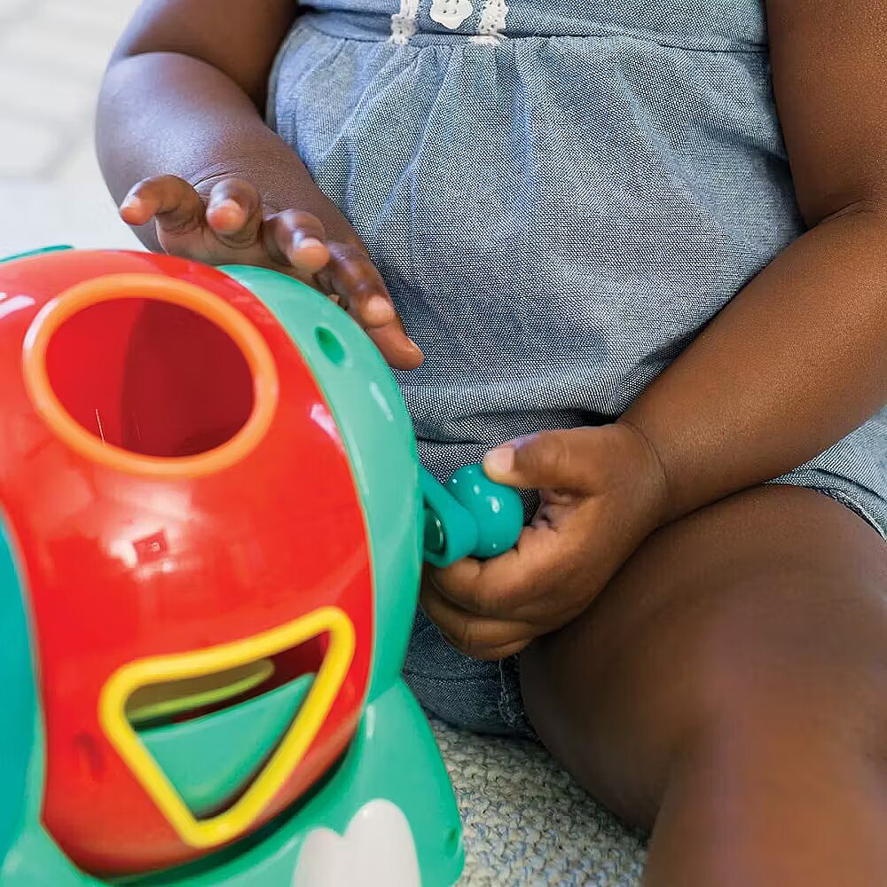 Description - INFANTINO SORTER WITH BLOCKS ELEPHANT Sorter with blocks of different shapes and colours. The blocks can be thrown through the corresponding holes in the sorter. After pressing on the ears, the elephant will throw the blocks through the trunk. The sorter can be turned and the blocks can be mixed by spinning the elephant's tail. Includes 5 blocks in different shapes (triangle, square, circle, star, hexagon).