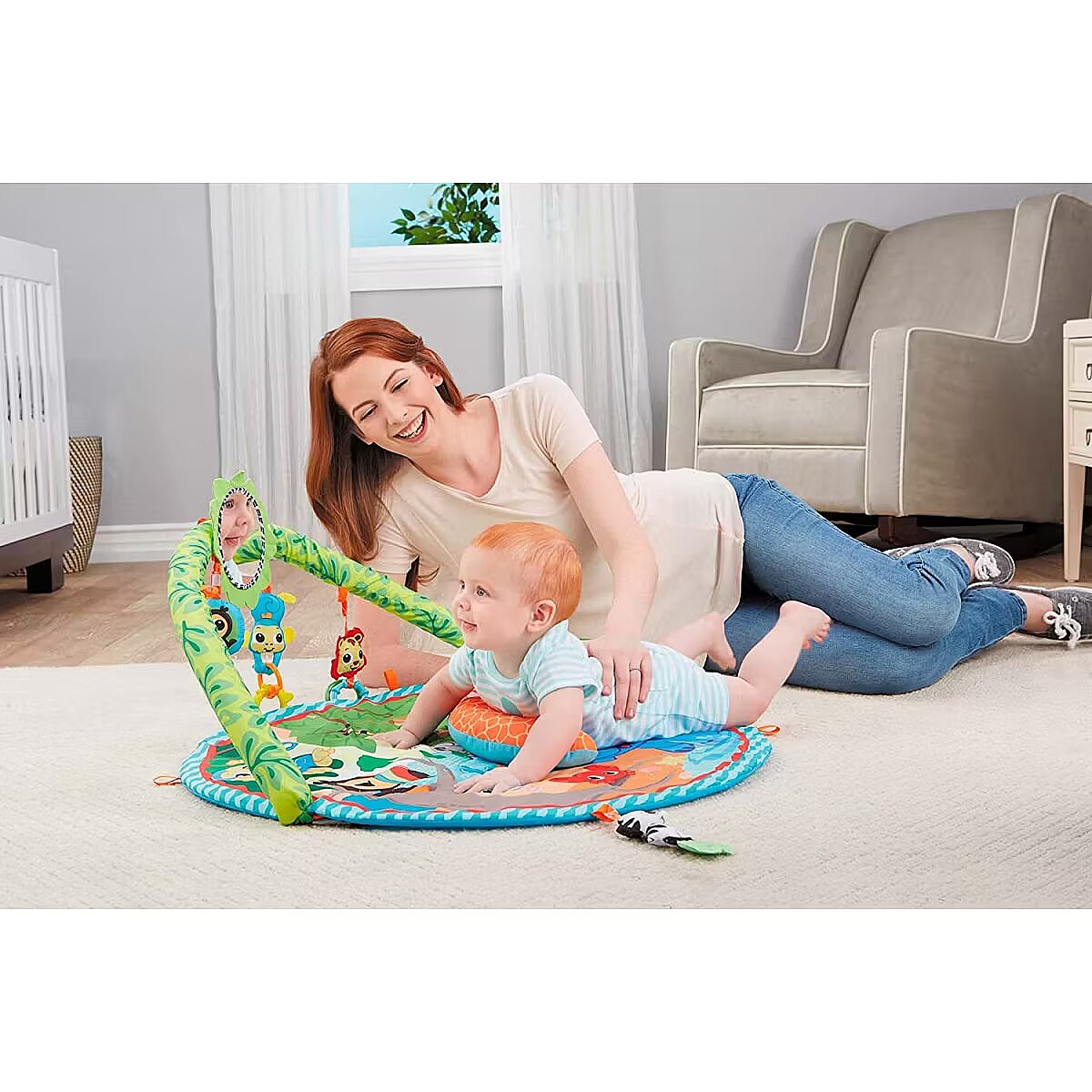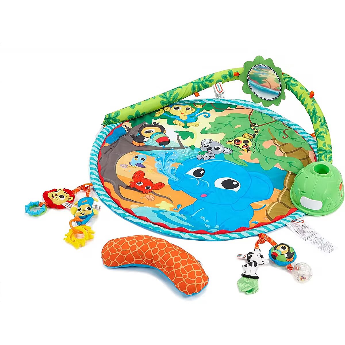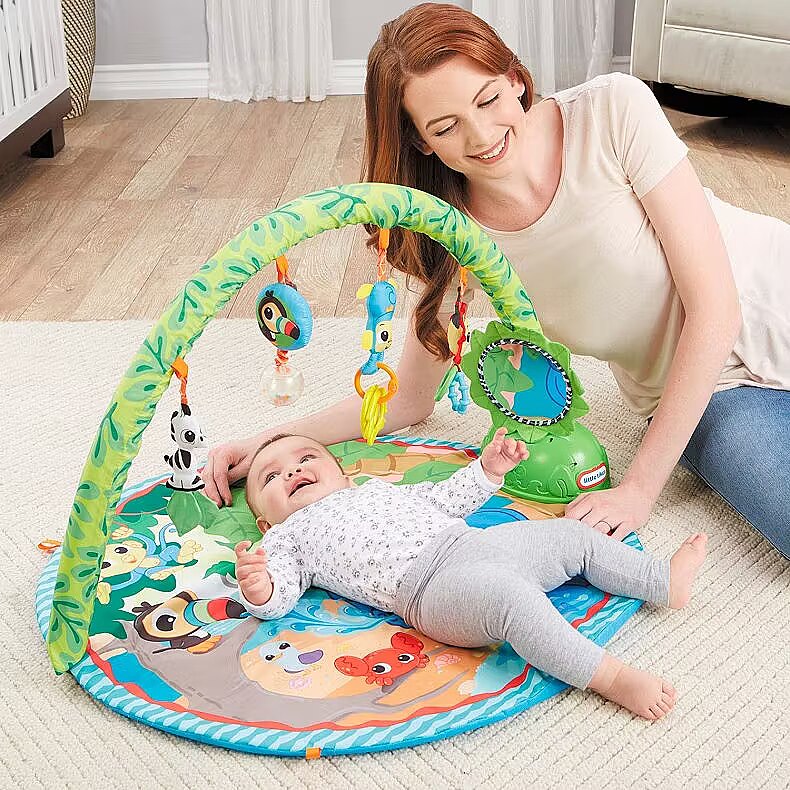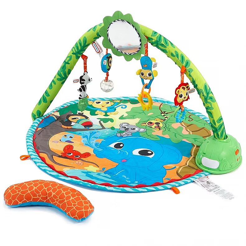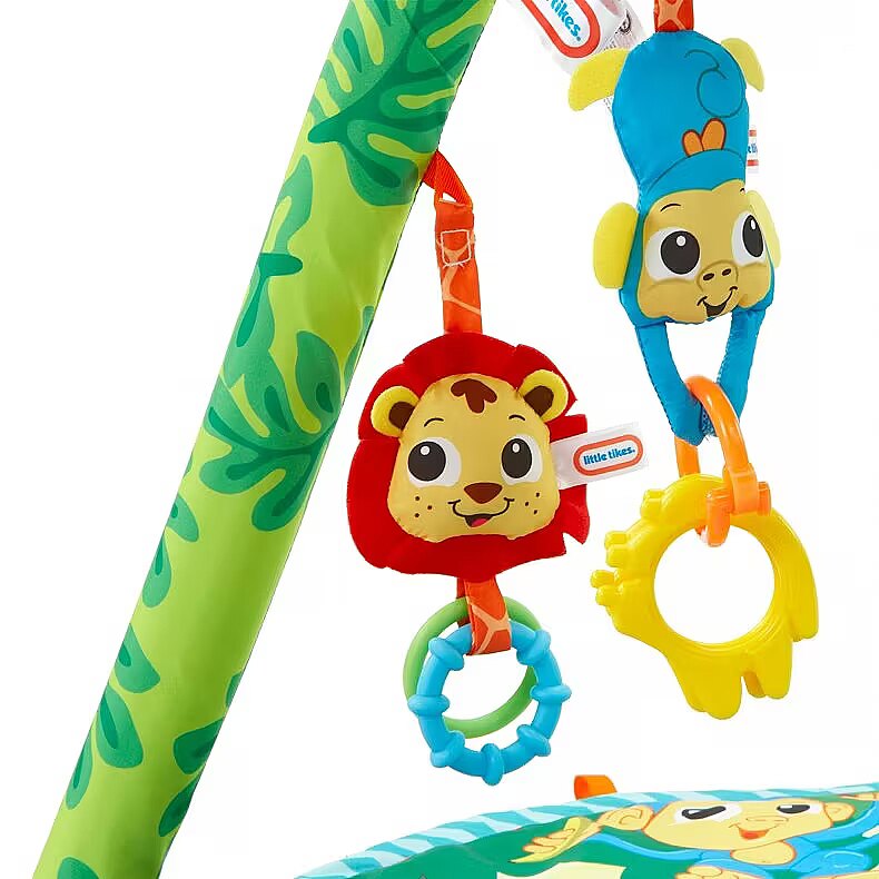 LongDesc - Little Tikes Baby products are “designed to develop” by addressing baby’s specific developmental needs through every coo, giggle, and stretch. The Little Tikes Baby Sway ‘n Play Gym is the only activity gym with an overhead bar that sways automatically! This soft mat gym is perfect for lay & play, tummy time, and sit & play fun. The unique sway bar gently swings the hanging toys, encouraging baby to eye track and reach for the toys. The Sway ‘n Play Gym features five toys with unique textures, as well as a tummy time pillow. This adorable gym will delight your baby as they begin to explore the world around them.Product Features: - 3-in-1 play patterns: Lay n Play, Tummy Time, Sit n Play- Lay ‘n Play – Overhead bar sways, while mirror and critters rock back and forth - Tummy Time – Move bar down for tummy time play with panel of mirror and link toys- Sit ‘n Play – Baby can sit next to bar to grasp and play with toys - Sway bar entertains your baby, encouraging them to track and reach for the hanging toys- Includes four hanging toys, adjustable mirror, tummy time pillow, and additional mat loops- Features 10 minutes of music and 9 different songs- Requires 4xAA batteries (not included)- Ages: 0+ years