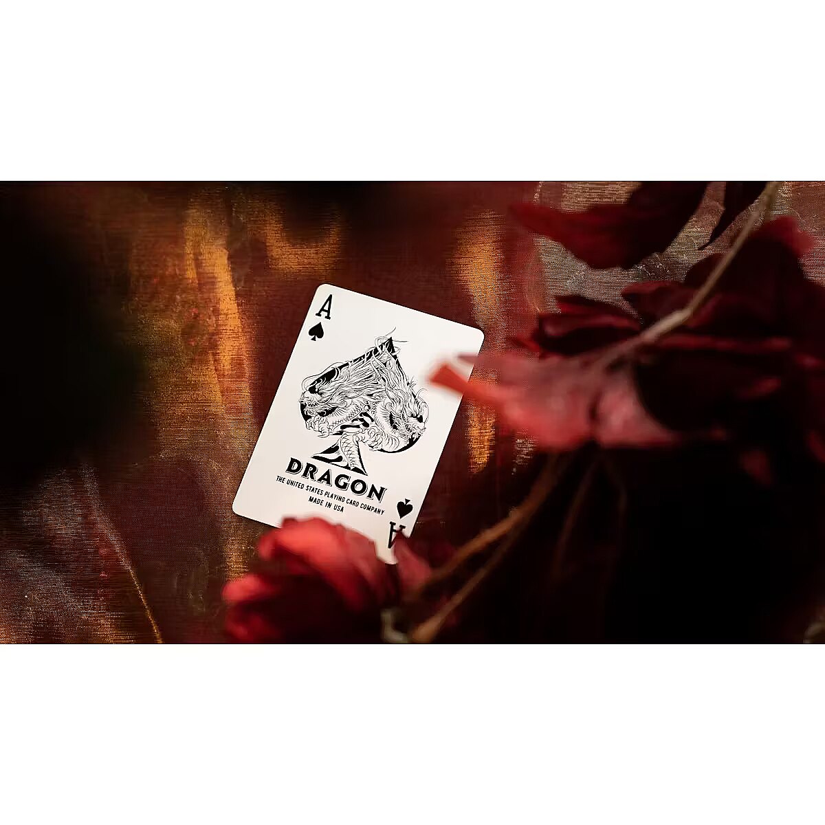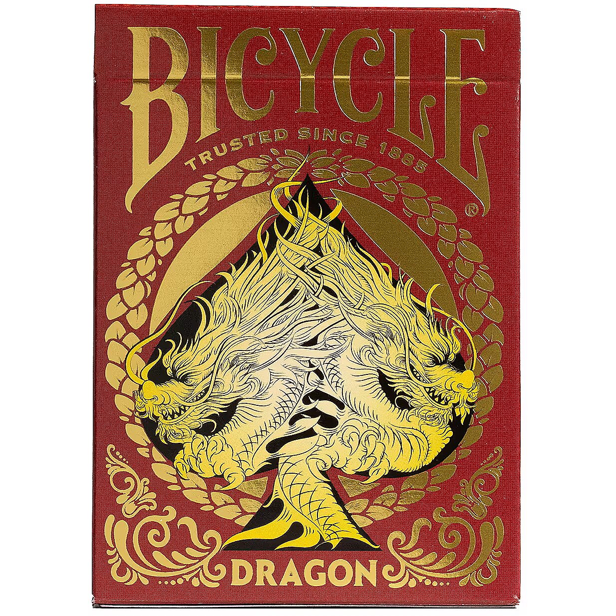 Description - Świętuj siłę i szczęście w Roku Smoka z kartami do gry Bicycle Red Dragon! Stylizowane figury ubrane w stroje inspirowane klasycznym kimonem dodadzą niepowtarzalnego blasku Twojej następnej grze. Olśniewająca, złota folia na pudełku położona na elementach smoka z pewnością zrobi wrażenie. Standardowa talia 52 karty. Made in USA.