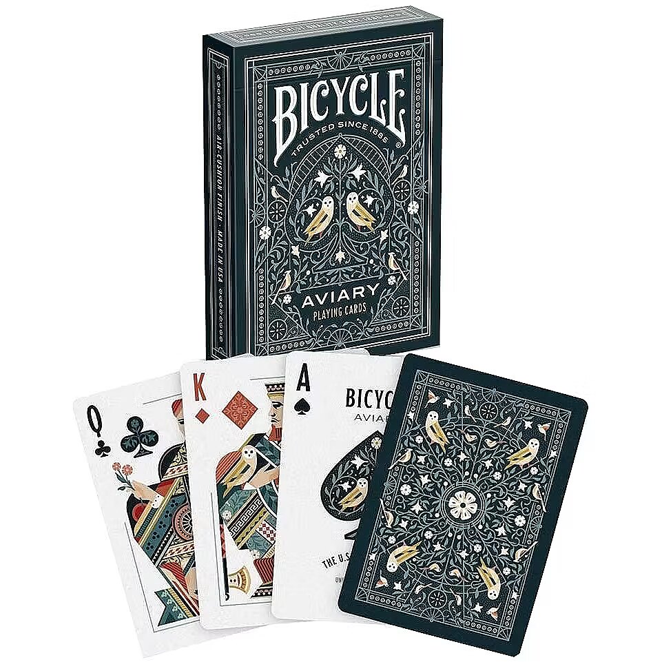 LongDesc - Let your next card game take flight with Bicycle® Aviary playing cards! Featuring custom illustrated faces, suits, and card backs the Bicycle Aviary deck is a beautiful, intricately designed deck of playing cards that will make a perfect addition to your collection.