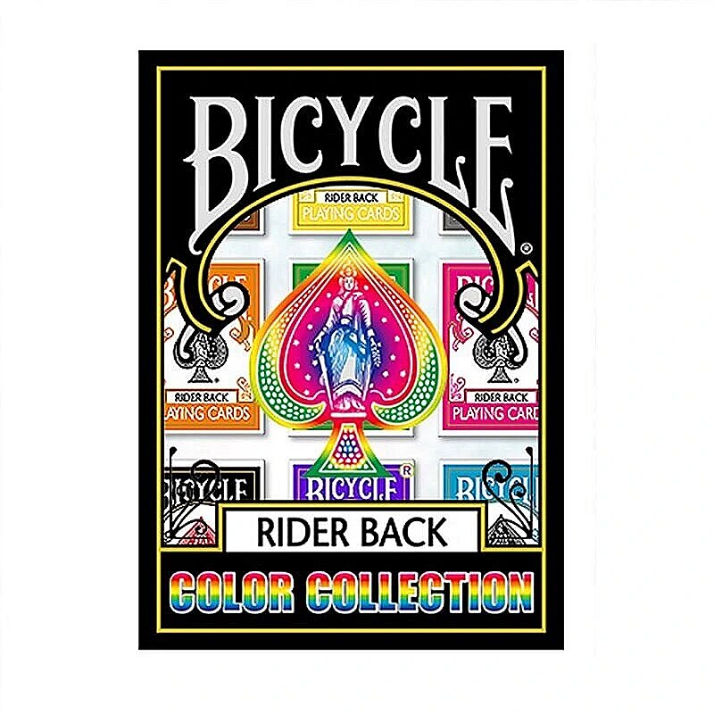 Description - Bicycle Color Collection The amazing "Bicycle - Colours" set. Elegant, transparent pack with 9 Bicycle decks in 9 different colours. An ideal gift set, for every Bicycle card lover this set is a "must have", It contains 9 decks in the following colours: Brown, Yellow, Grey, Orange, Green, Fuchsia, Red, Black, Turquoise. Most of the decks are impossible to buy separately.