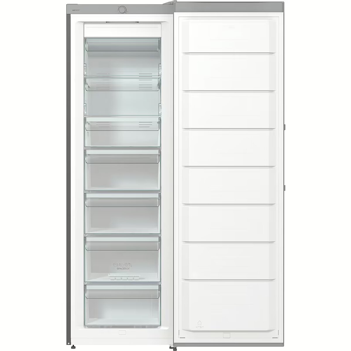 Description - Freezer FN619EES5 E (energy efficiency) Saving money Appliances that are 15 years old and older use up to three times more energy than new ones. New Gorenje models have excellent thermal insulation, the appliances have improved door seals, state-of-the-art cooling system components and electronic regulation that reduces energy consumption to a minimum. Effortless, without any stains Thanks to the innovatively designed, shiny and perfectly smooth inner liner, Gorenje GardenFresh fridge-freezers are extremely easy to clean, ensuring that food remains healthy and safe. Stable, quiet and durable Inverter compressors are quieter, more durable and use less energy than conventional compressors. They adapt better and faster to changes in temperature inside the appliance, for example when the door is opened, which means less temperature fluctuations and better conditions for storing food. Well-organized and efficient LED lighting in the freezers provides excellent and very efficient lighting. Its lifespan is thirty times longer than traditional light bulbs, while saving up to ten times more electricity. Ideal microclimate on every shelf The MultiFlow 360° ventilation system evenly distributes air in the freezer compartment to ensure optimal air circulation and the best conditions for storing food. No more troublesome defrosting One of the best cooling systems on the market, installed in the freezer compartment, prevents the accumulation of ice and frost to maintain low energy consumption. As a result, the use of usable capacity is optimal, and defrosting and cleaning the interior is no longer necessary. Packages or pieces of frozen food will not stick to each other, keeping the freezer tidy. No restrictions on door opening Thanks to the functionality of opening the Chest Freezer door at a right angle, all shelves and containers can be fully extended. This solution is ideal for chest freezers placed against a side wall or next to a counter or other appliance. Enough space to store a turkey This freezer drawer is the largest in the appliance and is ideal for storing large items such as a turkey, several pizzas or even cakes. Larger storage capacity The larger storage capacity reflects the trends in modern refrigeration. It is the best solution for storing large quantities of products. The larger capacity allows for better food organization, giving you a better overview of what is in the stock, which also results in less food waste. Storing more food also means less frequent shopping and more time for yourself. Optimal performance even in severe frost Severe cold is no longer a problem, because this chest freezer works perfectly even in ambient temperatures down to -15 ° C, making it the ideal choice for garages and basements.