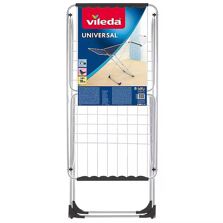 Dzięki 18 metrom powierzchni suszenia uniwersalna suszarka Vileda pomieści nawet dwa pełne prania, co czyni ją idealną do codziennego suszenia ubrań. Bezpieczna, kompaktowa i łatwa w użyciu