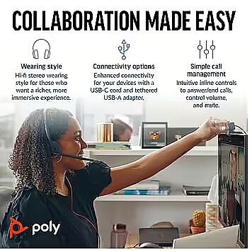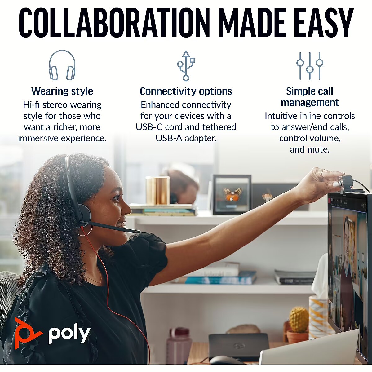 Title - HP Poly Blackwire 3220 Stereo USB-C Headset +USB-C/A Adapter