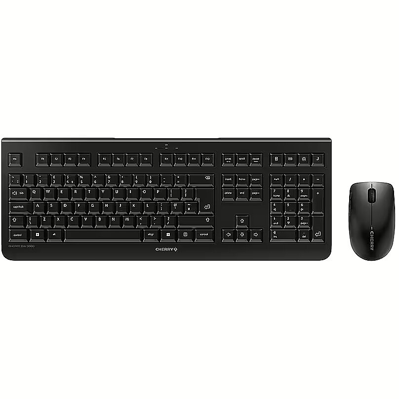 LongSummaryDescription - CHERRY DW 3000. Keyboard form factor: Full-size (100%). Keyboard style: Straight. Connectivity technology: Wireless, Device interface: RF Wireless, Keyboard layout: QWERTY, Keyboard number of keys: 108, Recommended usage: Home/Office. Product colour: Black. Mouse included