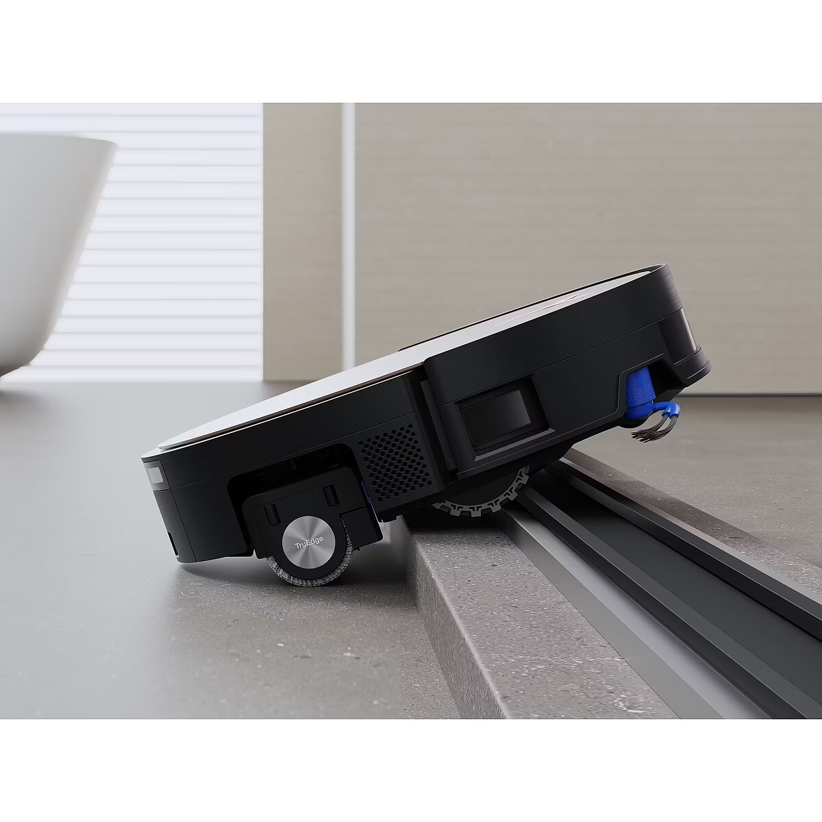 The upgraded TruEdge 3.0 Extreme Edge Cleaning technology features an air-suspended roller with an extended reach of 1.5 cm. The variable cushion system adjusts in real time to guarantee wall-to-wall perfection, while the fixed side brush picks up edge debris – ensuring maximum cleaning coverage without the need for user intervention. BLAST solution