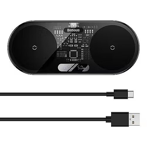 A compact wireless charger will allow you to keep an eye on the condition of the battery and make sure that the electronic device is always ready for work. 2-in-1 gadget equipped with two induction coils, so its functionality automatically increases.