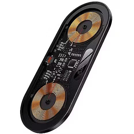 Компактное беспроводное зарядное устройство позволит вам следить за состоянием аккумулятора и быть уверенным, что электронное устройство всегда готово к работе. Гаджет 2-в-1 оснащен двумя индукционными катушками, поэтому его функциональность автоматически увеличивается.