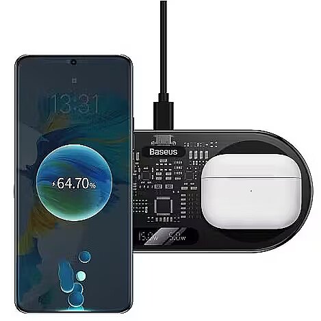 Kompaktais bezvadu lādētājs ļaus jums sekot līdzi akumulatora stāvoklim un nodrošināt, ka elektroniskā ierīce vienmēr ir gatava darbam. 2-in-1 sīkrīks aprīkots ar divām indukcijas spolēm, tāpēc tā funkcionalitāte automātiski palielinās.