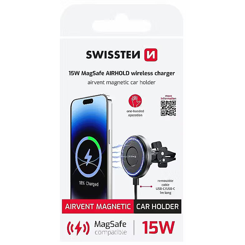 Swissten Airhold Magnetic Car Holder with Wireless Charger 15W / 7.5W (MagSafe compatible)