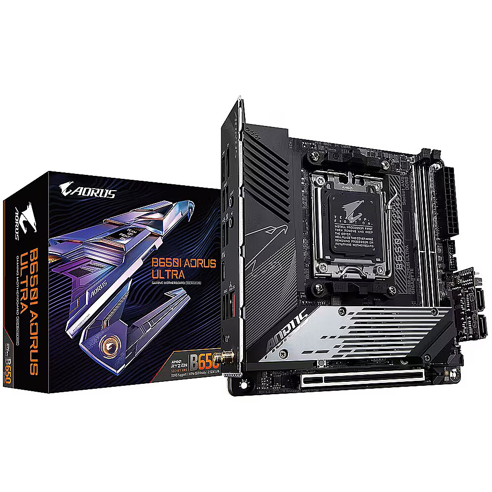 Title - GIGABYTE B650I AORUS ULTRA Motherboard - Supports AMD Ryzen 9000 CPUs, 8+2+1 Digital VRM, up to 7200MHz DDR5 (OC), 1xPCIe 5.0 + 2xPCIe 4.0 M.2, Wi-Fi 6E, 2.5GbE LAN, USB 3.2 Gen 2x2