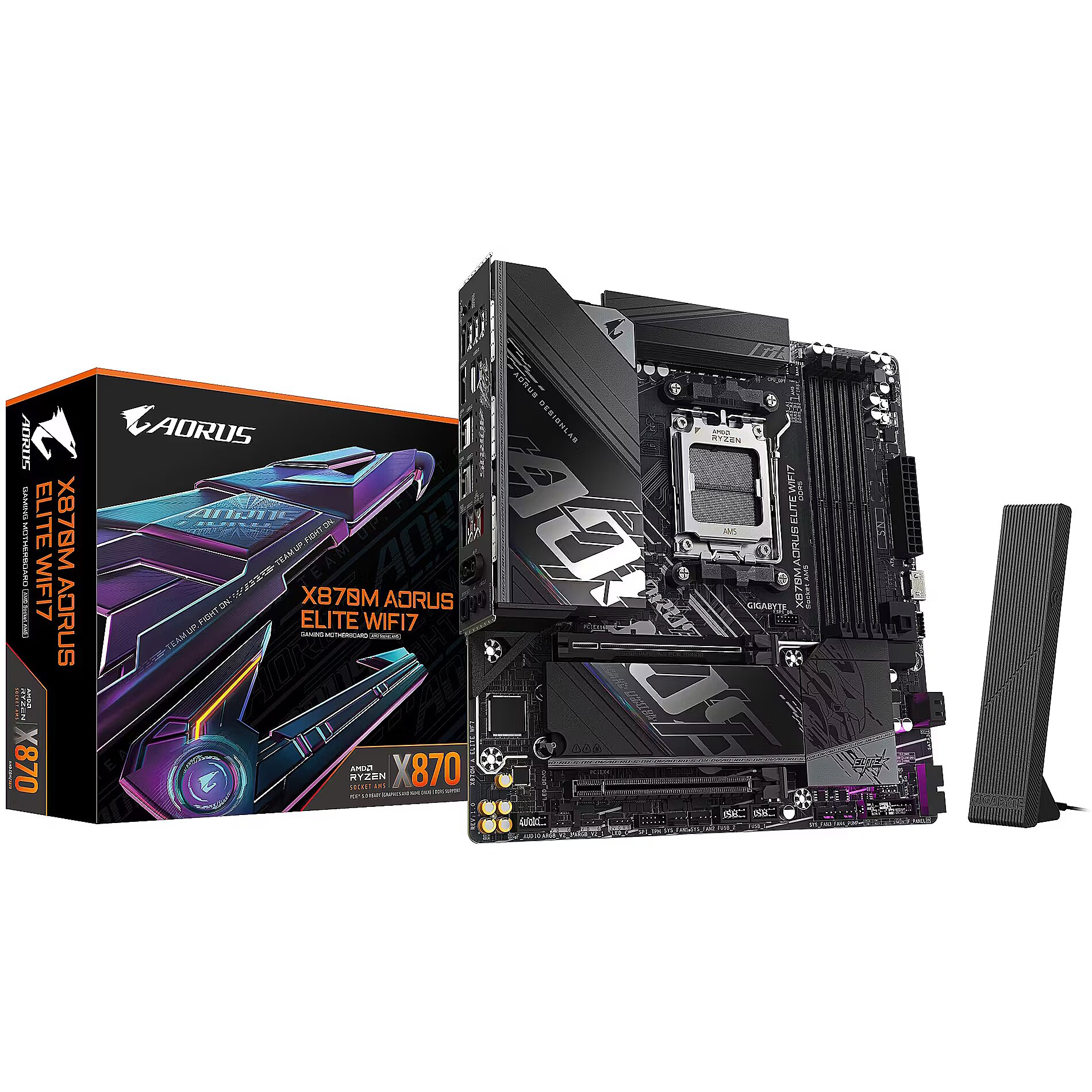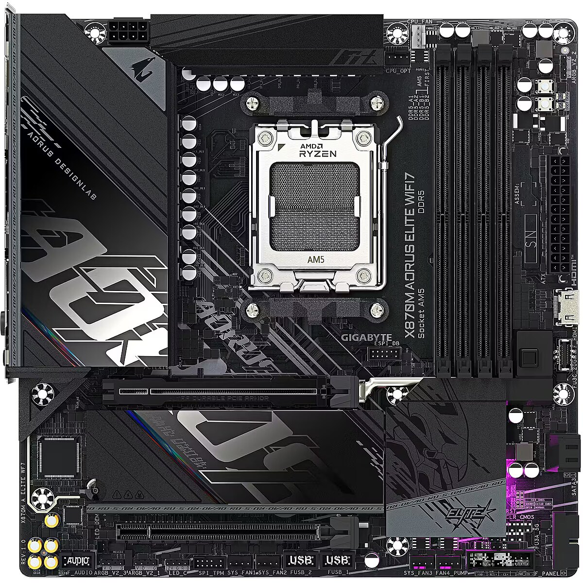 ShortSummaryDescription - GIGABYTE X870M AORUS ELITE WIFI7 Motherboard - Supports AMD Ryzen 9000 CPUs, 14+2+2 Phases Digital VRM, up to 8200Hz DDR5 (OC), 1xPCIe 5.0 + 1xPCIe 4.0, Wi-Fi 7, 2.5 GbE LAN, USB 4, AMD, Socket AM5, AMD Ryzen 7000 Series, AMD Ryzen 8000 Series, AMD Ryzen 9000 Series, Socket AM5, DDR5-SDRAM, 256 GB
