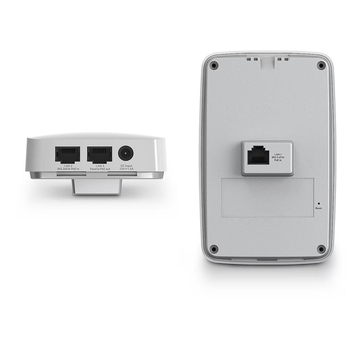 LongDesc - EnGenius Cloud Managed Wi-Fi 6 Wall-Plate Access Point ECW215 delivers throughput speeds up to 1,200 Mbps (5 GHz) & 574 Mbps (2.4 GHz), and equips with 2 GE-port supporting 802.3af/at PoE-in. Featuring remote management, Gigabit Ethernet PoE port, 12/48V DC input, quick-scan device registration, and EnGenius Cloud App for unlimited AP management. Mesh Wireless Support streamlines setup and optimizes signal quality.