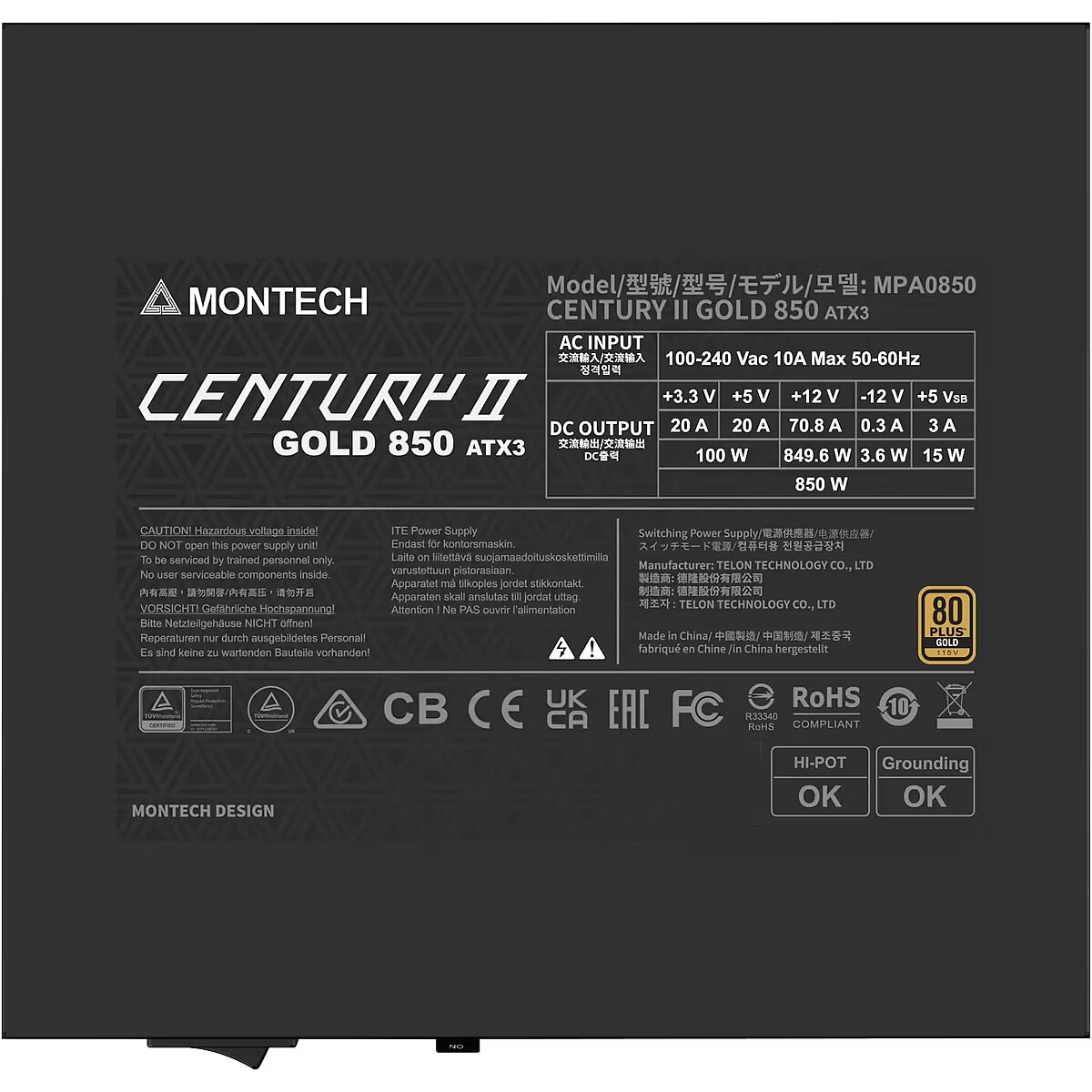 Montech Century II, 850W, 80PLUS Gold, ATX 3.1, PCIe 5.1