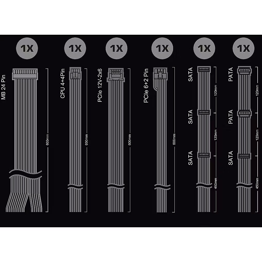 Цвет блока питания Melna. Он оснащен плоскими кабелями, цвет которых Melna.