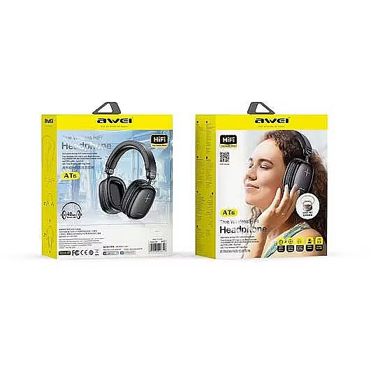 Description - The AWEI AT6 wireless headphones are the perfect companion for your daily music listening. Thanks to Bluetooth wireless technology, you can enjoy a stable connection to your device and experience high-quality sound. A huge advantage of these headphones is their foldable design, making them easy to carry and use. The foldable AWEI AT6 headphones are made of high-quality materials, reminiscent of classic leather-covered headphones. The headphones can be easily adjusted to fit your head shape, and the noise-isolating ear cushions provide a comfortable fit. Additionally, the Awei AT6 offers advanced Bluetooth 5.3 technology, ensuring a stable and reliable wireless connection. Say goodbye to frustrating interruptions and dropouts. Plus, the headphones are equipped with a powerful 300mAh battery, providing approximately 12 hours of playback time on a single charge. So, you can listen to music, podcasts, or audiobooks for days on end without worrying about running out of battery. Crystal-clear sound The Awei AT6 features 40mm drivers that deliver rich and powerful sound reproduction. Whether you're a bass enthusiast or a lover of clear highs, the AT6 provides a well-balanced soundscape that faithfully reproduces your audio. Additionally, with a sensitivity of 113 3 dB, the headphones provide sufficient volume even in the noisiest environments. Moreover, the Awei AT6 prioritizes comfort during extended listening sessions. The over-ear design with soft ear cushions conforms to the shape of your head, minimizing pressure points and ensuring a fatigue-free listening experience.