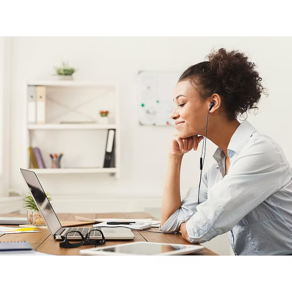 These Gumy Connect USB-C wired in-ear headphones feature an in-line remote with easy-to-press buttons and a microphone on/off switch. Lag-free, they're perfect for watching movies or playing games. The built-in digital-to-analog converter reduces noise and improves sound quality, so you can enjoy calls and music in high-quality sound. Perfect sound thanks to the 9.2mm neodymium driver. Easy-to-use remote with three buttons (volume up, down, play/pause/forward/back) and a dedicated slide switch for microphone on/off. Compact and lightweight body, perfect for long-term online communication. Eco-friendly packaging.