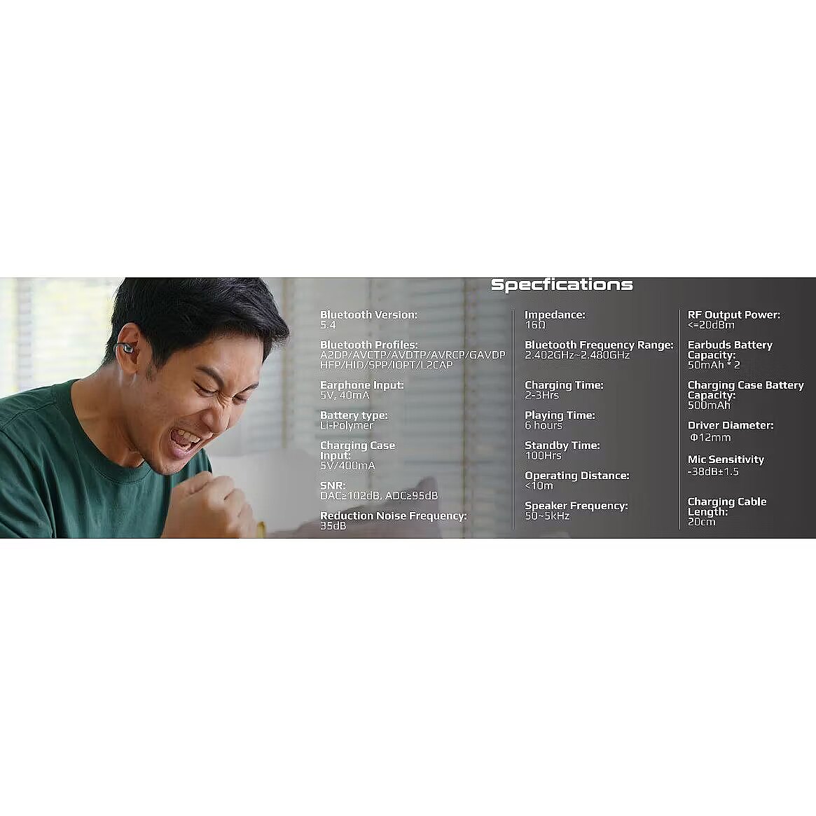 Water resistance: IPX4 The lightweight open-ear design reduces strain on the ears, while touch controls make it easy to manage music and calls. With the charging case, the total playback time reaches up to 28 hours, ensuring long usage without frequent recharging.