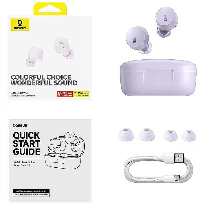 productName - Baseus Bowie E18 Headset True Wireless Stereo (TWS) In-ear Calls/Music USB Type-C Bluetooth Purple