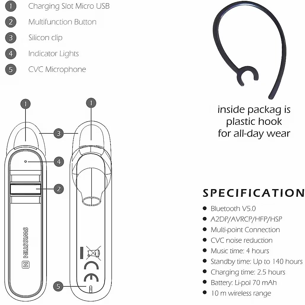 title_ru - Swissten Caller Bluetooth HandsFree Наушник с Функцией MultiPoint / CVC Noise Reduction