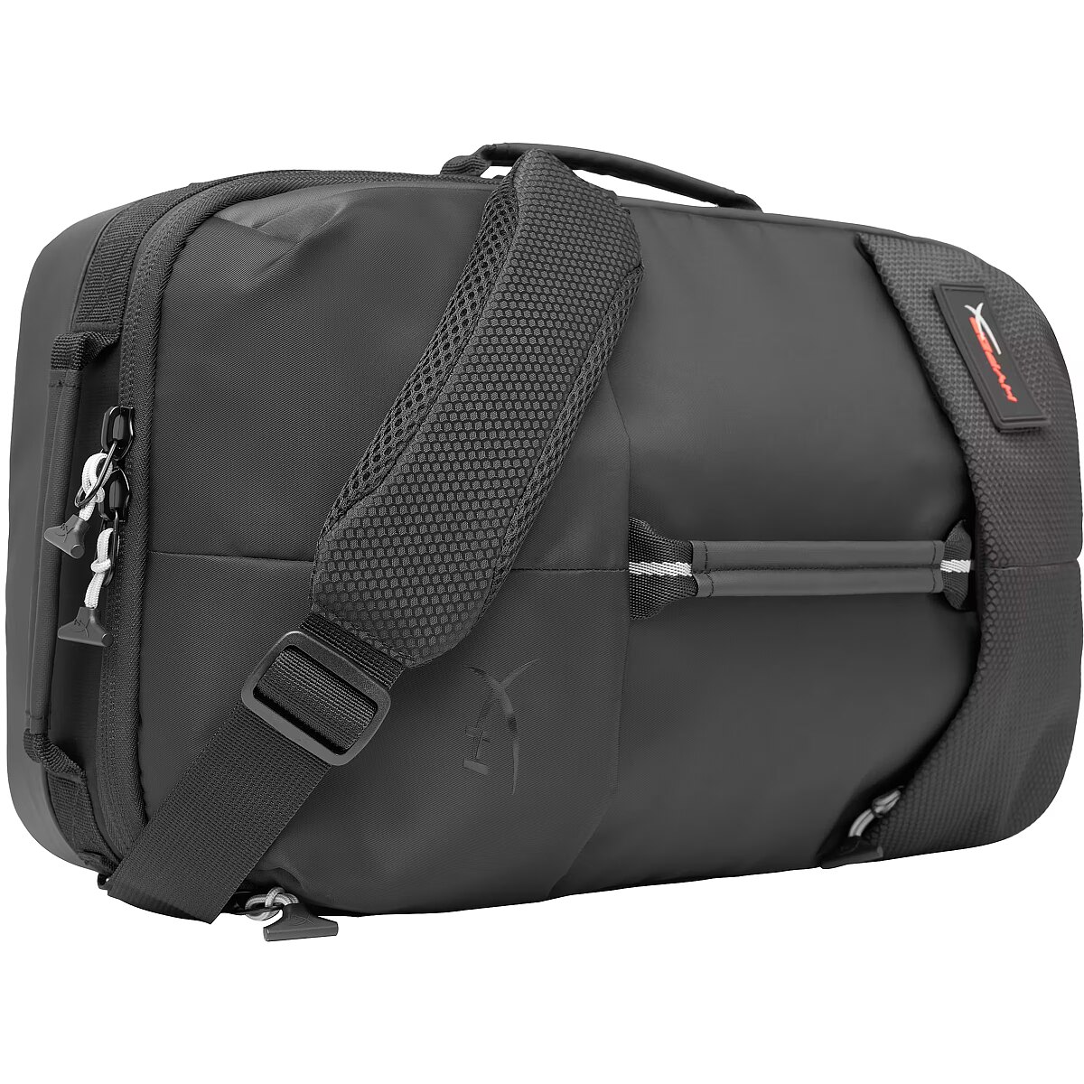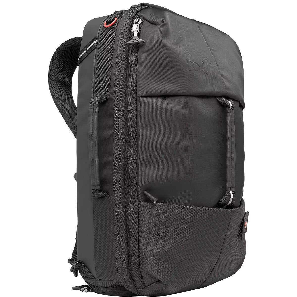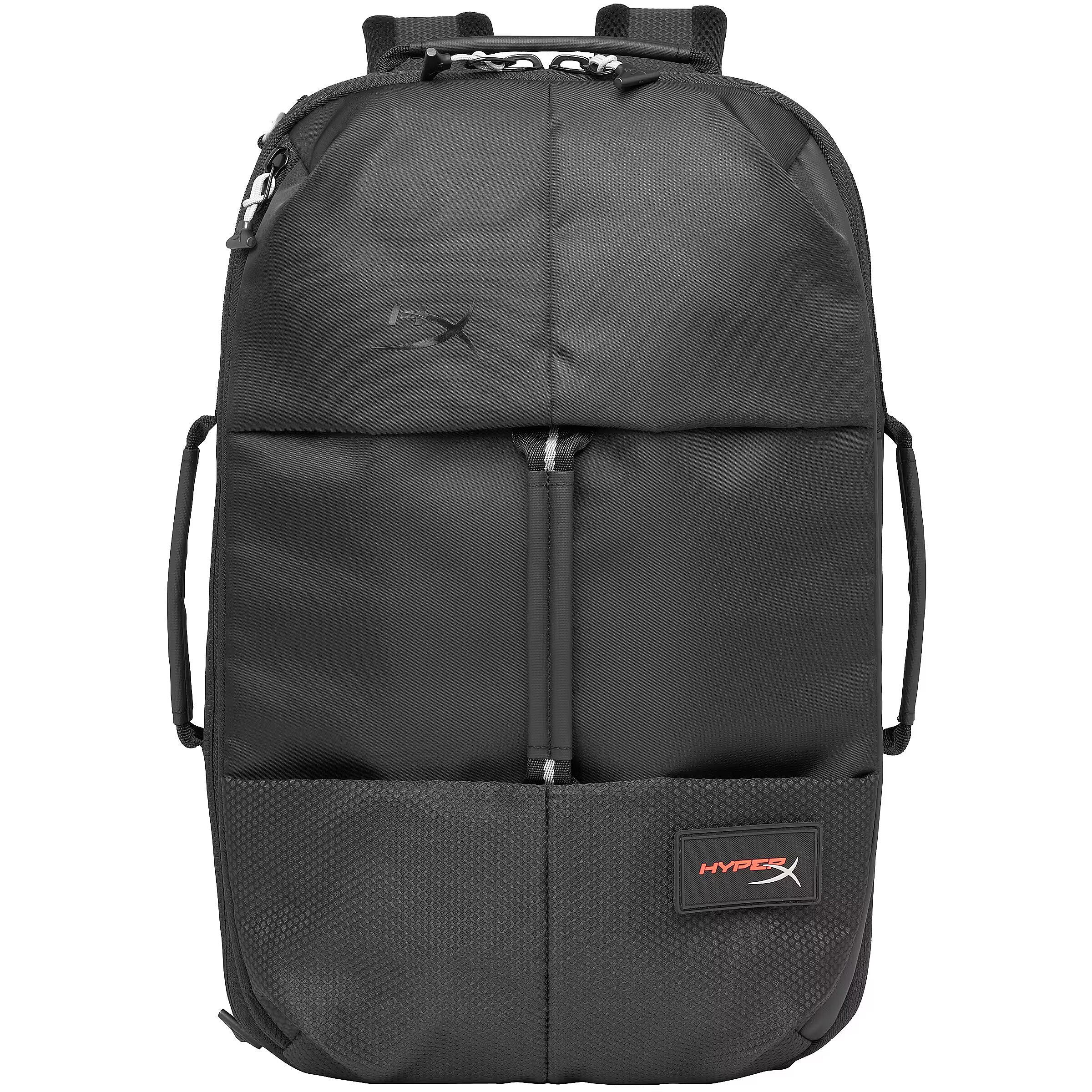 LongDesc - Mobilize your gaming HQ.We built the HyperX Knight Gaming Backpack for gamers who don’t want to risk their performance on someone else’s gear. It features a clamshell-style opening that makes it easy to deploy your own personal gaming pop-up anywhere you roam. Classic HyperX styling lets you tastefully rep your love of HyperX and gaming while you’re out and about. Securely stow gaming laptops as large as 16 inches, plus several other necessary bits of gaming kit like a controller, keyboard, tablet, or more thanks to the Knight’s cavernous interior. Internal storage slots carve out compartments for cables, pens, power banks, and other important gear. These easy-access compartments also help simplify the bag check process. A handy quick access pocket offers additional storage for easy access to snacks or other utility items. Is your back getting tired of all that carrying? Tuck the shoulder straps away and use the handy duffel strap to let your arms put in some work or use the luggage handle passthrough to attach it to your rolling luggage.