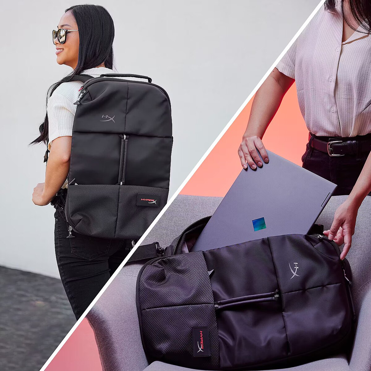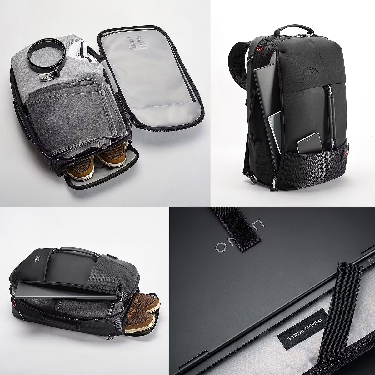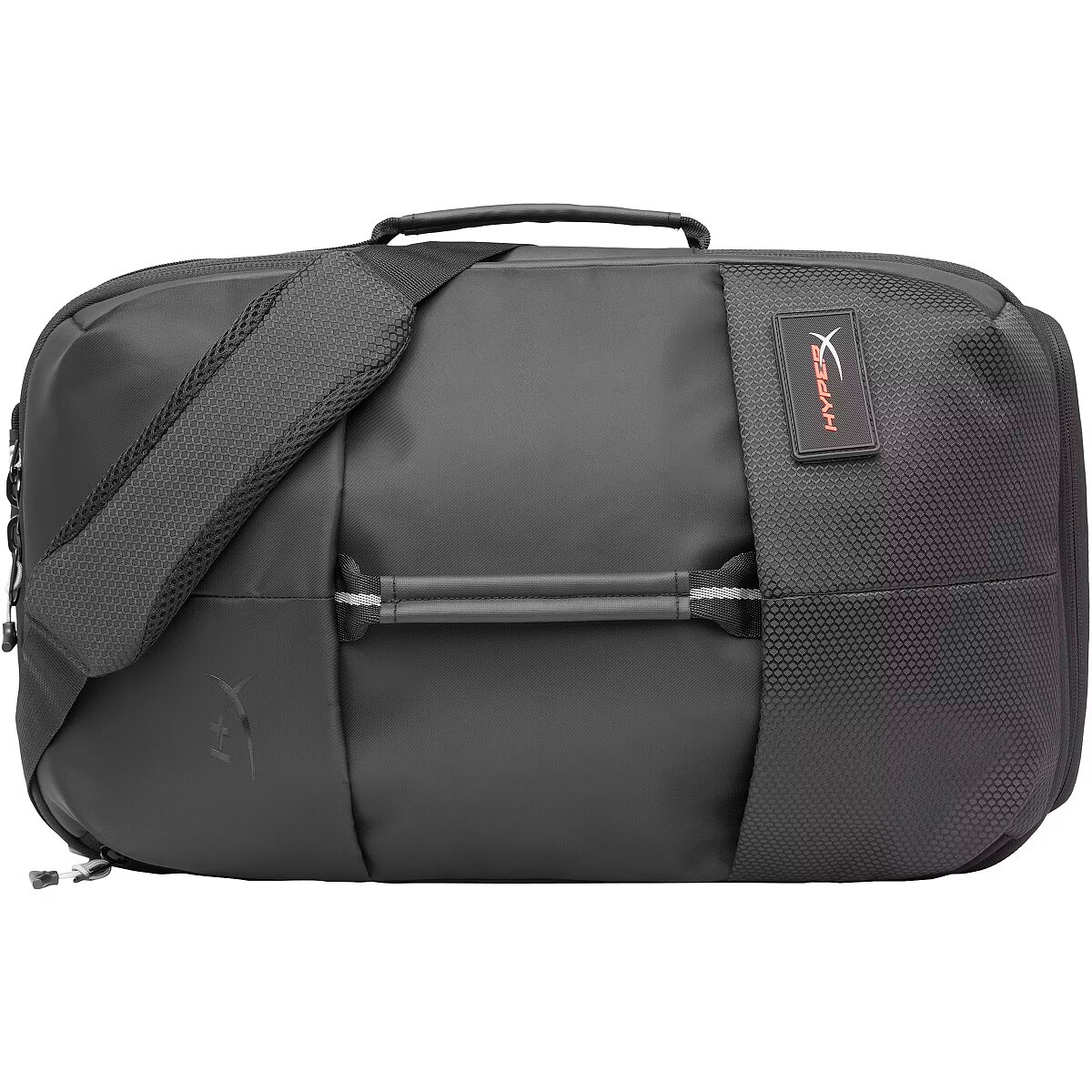 LongDesc - Mobilize your gaming HQ.We built the HyperX Knight Gaming Backpack for gamers who don’t want to risk their performance on someone else’s gear. It features a clamshell-style opening that makes it easy to deploy your own personal gaming pop-up anywhere you roam. Classic HyperX styling lets you tastefully rep your love of HyperX and gaming while you’re out and about. Securely stow gaming laptops as large as 16 inches, plus several other necessary bits of gaming kit like a controller, keyboard, tablet, or more thanks to the Knight’s cavernous interior. Internal storage slots carve out compartments for cables, pens, power banks, and other important gear. These easy-access compartments also help simplify the bag check process. A handy quick access pocket offers additional storage for easy access to snacks or other utility items. Is your back getting tired of all that carrying? Tuck the shoulder straps away and use the handy duffel strap to let your arms put in some work or use the luggage handle passthrough to attach it to your rolling luggage.