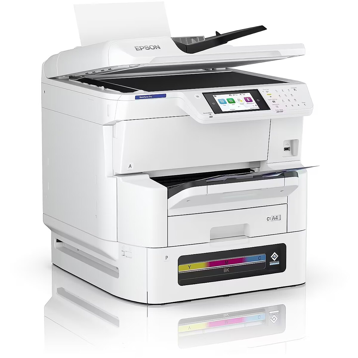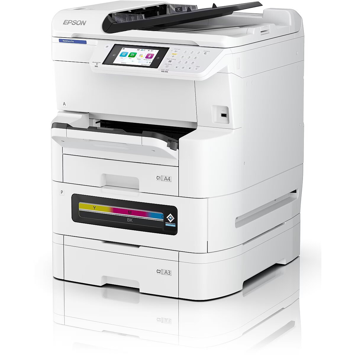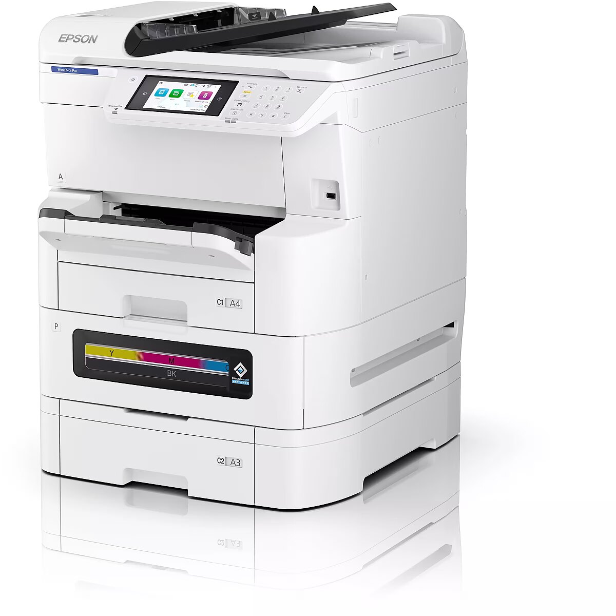 LongDesc - A3 colour high ink-yield RIPS with low power consumptionLow running costs with low interventionA paper capacity of up to 1,835 sheets means less time spent refilling paper. High ink yields lower the need to order and replace supplies frequently4, help to deliver predictable print costs and a competitive TCO. Our Heat-Free printing technology, uses no heat in the ink ejection process, so your business can save energy, time and reduce intervention5.Uninterrupted, high-volume printingPrint up to 20,000 pages (mono/colour) without changing supplies4 with a fast FPOT of 5.5 seconds from ready mode1 and single-pass duplex scan increase productivity. Print speeds of 25 ppm and 45 ipm duplex scan 4, ensure this an ideal printer for a wide range of industry sectors. Lower costs of servicing and maintenance make this a reliable and attractive choice for businesses.Solutions to support your businessEpson Print Admin (EPA) aids your print security requirements, as well as scan workflows with Document Capture Solution Suite. Compatibility with embedded Solutions, such as IP-Fax and easy remote diagnosis with Epson Remote Services, all boost additional functionality to the device. Vertical market needs are addressed through the compatibility with 3rd party solutions thanks to the Epson Open Platform.