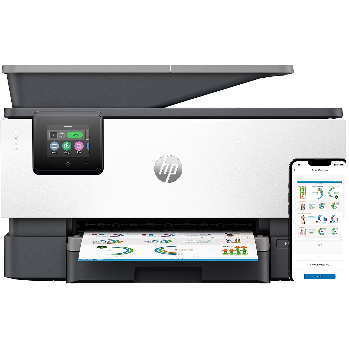 ShortSummaryDescription - HP OfficeJet Pro 9122e Wireless All-in-One Color Printer, Instant Ink; Two-sided printing, Thermal inkjet, Colour printing, 4800 x 1200 DPI, A4, Direct printing, Grey