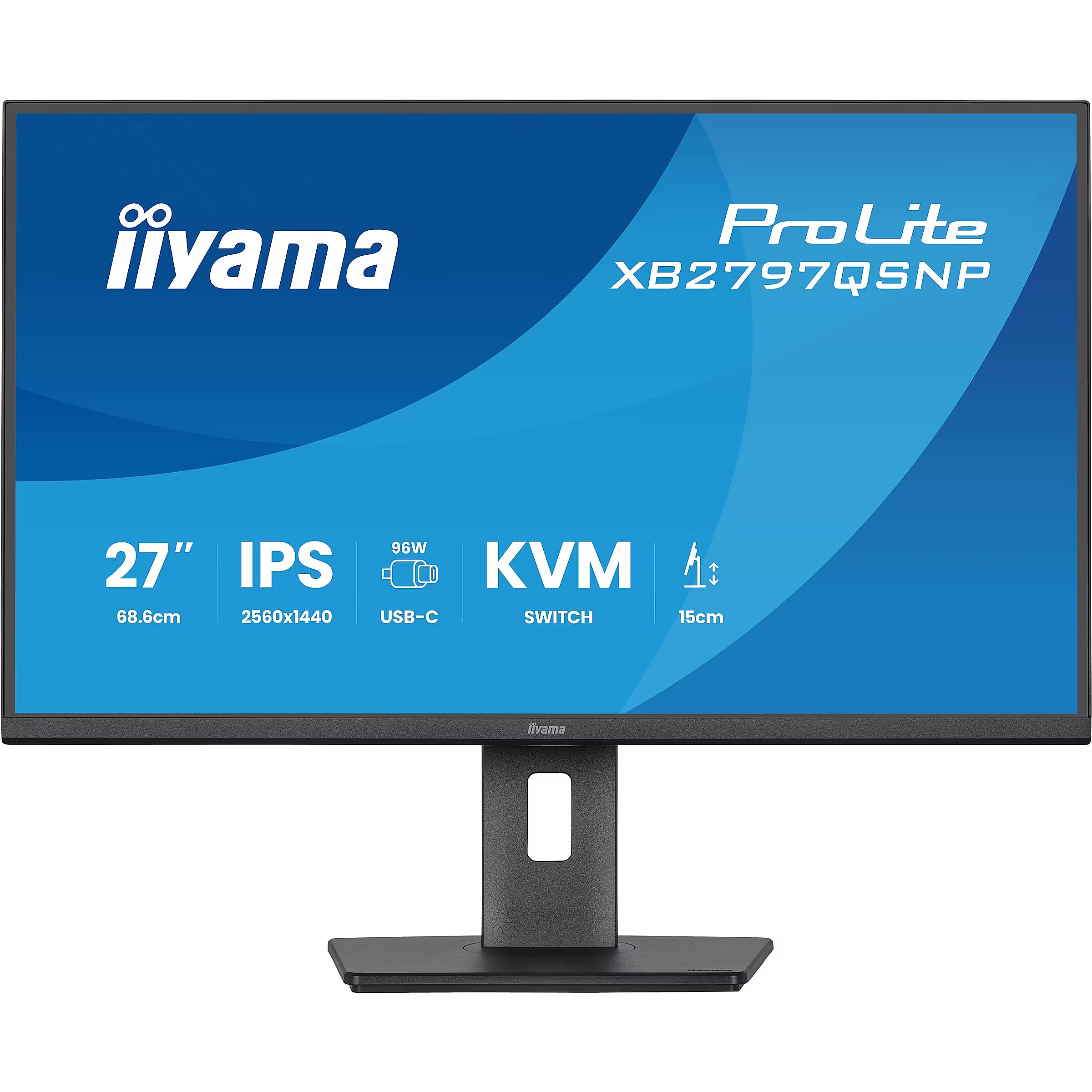 LongSummaryDescription - iiyama ProLite XB2797QSNP-B1. Display diagonal: 68.6 cm (27"), Display resolution: 2560 x 1440 pixels, HD type: Quad HD, Display technology: LED, Display surface: Matt, Native aspect ratio: 16:9, Viewing angle, horizontal: 178°, Viewing angle, vertical: 178°. Built-in speaker(s). Built-in USB hub, USB hub version: 3.2 Gen 1 (3.1 Gen 1). VESA mounting, Height adjustment. Product colour: Black