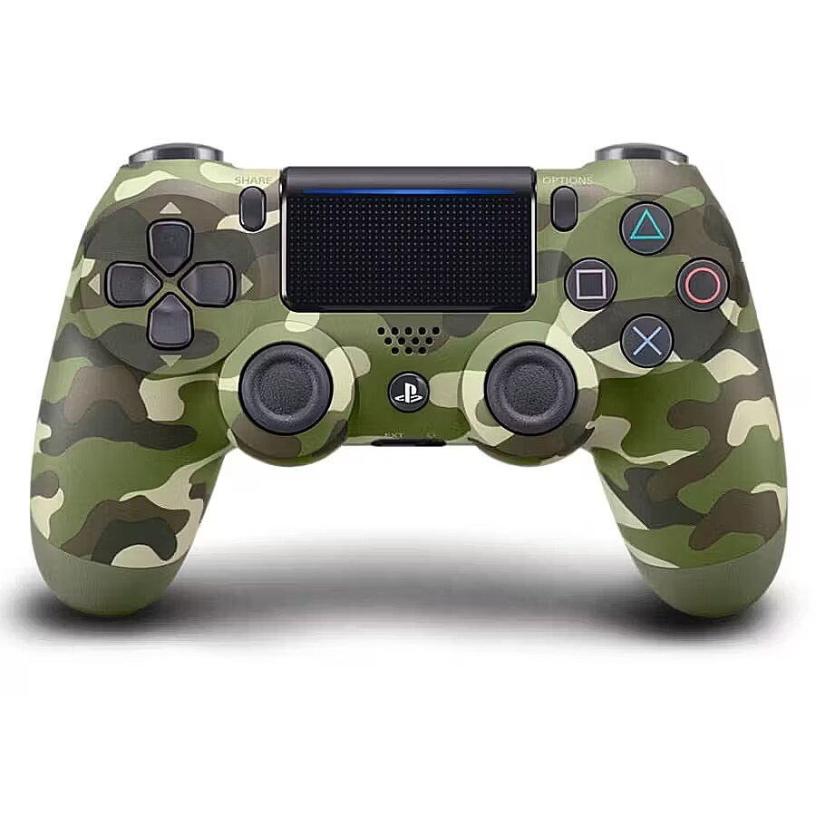 LongSummaryDescription - Sony DualShock 4 V2 Green Camouflage. Device type: Gamepad, Gaming platforms supported: PlayStation 4, Gaming control function buttons: D-pad, Home button, Select button, Share button, Start button. Connectivity technology: Wired & Wireless, Device interface: Bluetooth/USB, Bluetooth version: 2.1+EDR. Product colour: Camouflage, Housing material: Plastic. Power source: Cable/Battery, Battery type: Built-in, Battery technology: Lithium-Ion (Li-Ion). Width: 162 mm, Depth: 98 mm, Height: 52 mm