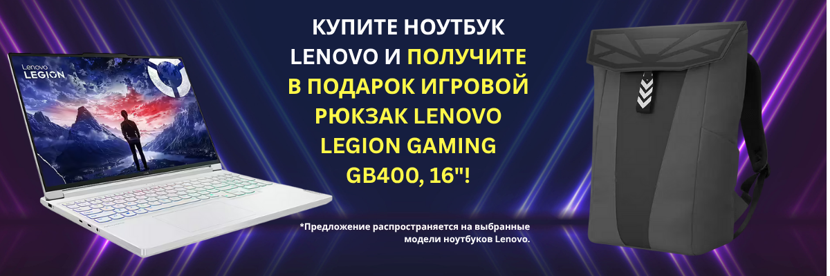 Купите ноутбук Lenovo Legion и получите игровой рюкзак в подарок.